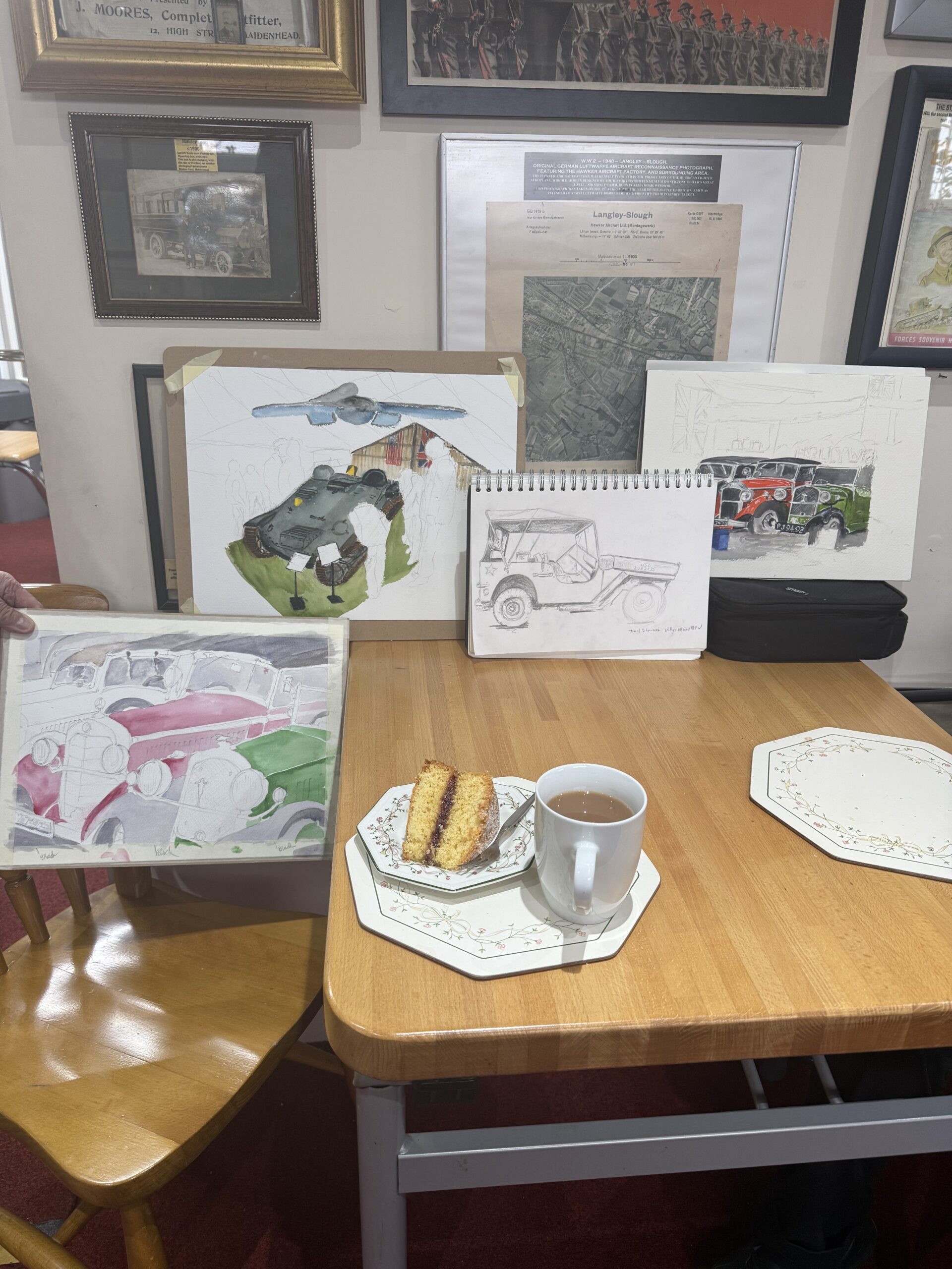 We had a fabulous day at the History on Wheels Museum for the final Sunday Painting of the year. We were made very welcome by the proprietor Pete Oliver. It was very cold but this didn’t spoil a really lovely day as we could be inside with a good supply of tea and cake from the café. There was so much to see and paint, it really was marvellous.