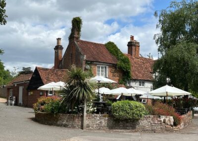 Our 2025 outdoor painting programme got off to a good start on 6th April, with 8 members meeting to paint views in and around the picturesque Chiltern village of Hambleden. The weather was amazing for the time of year, comfortably warm and sunny. This location never disappoints and provided the opportunity to paint some of the attractive village buildings or the surrounding meadows. After a few hours painting in the lovely sunshine, we sat outside the village café and Post Office enjoying the tea and cakes available, reflecting on our hard day’s work!