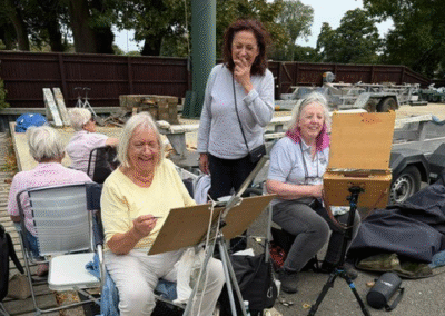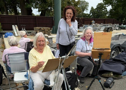 Early in September several members enjoyed a day painting at Littlewick Green. We were really lucky with the weather as rain had been forecast. Everyone went back to Pam Hammond’s for tea and cake where we were joined by Joanne and Kay.